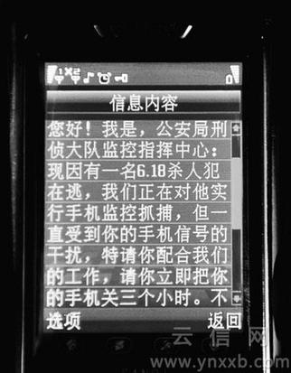 “您好!我是公安局刑偵大隊(duì)監(jiān)控指揮中心:現(xiàn)因有一名6.18殺人犯在逃……請(qǐng)你立即關(guān)閉手機(jī)三小時(shí),否則拘留七至十五天!苯拥竭@樣的短信后,岳代林相信了,關(guān)閉了手機(jī)。然而發(fā)短信的人卻利用他關(guān)電話的空當(dāng),向他身在四川的家屬謊報(bào)他出了“車禍”。然而假的真不了,再高明的騙局遲早也要“露餡”。