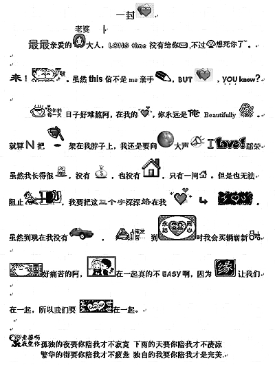 MM、菜鳥、恐龍、粉絲、BT……這些俏皮的“網(wǎng)語”一下子得到了很多年輕人的認同!拔医(jīng)常把‘愛’字寫成‘じ☆ve’,里面有日文和英文,它能直觀形象地表達‘愛’的含義!鄙虾J械谒闹袑W初三學生君君說,她和同學在網(wǎng)上聊天時用的是“火星文”,她的QQ個性簽名也是“火星文”,她認為這樣很可愛,也很有個性。