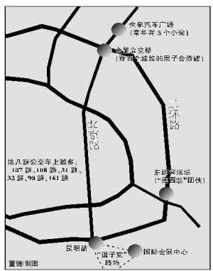 “真有那么夸張,親眼所見!睂τ诨顒釉跂|部客運站的“黑西裝”團伙,帖主強調“親眼所見”的同時,還用了“夸張”一詞描述。帖主說,你提包上車時“黑西裝”一哄而上,伺機下手。而在金星立交橋附近,則有個三年如一日背著個不會長大的娃娃的男人,很好認,(大家要)見他就閃!還有,國際會展中心那里,至少兩個人……遇到在昆明站轉悠的“鑷子黨”,不要把錢放在外衣口袋里。