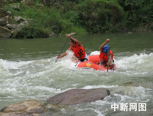 中新網(wǎng)成都7月11日電(張琳琳)7月11日,2009中國·都江堰(虹口)國際漂流節(jié)在都江堰市虹口景區(qū)拉開序幕。漂流節(jié)的的重頭戲是“自然水域漂流大賽”,來自美國、英國、澳大利亞、捷克、荷蘭的5支外國隊伍及遼寧、貴州、北京等7個省市的11支隊伍,總計45名運(yùn)動員參加了比賽。比賽的項(xiàng)目為雙人橡皮艇長距離漂流,最終來自英國、捷克的代表隊分別獲得冠軍、季軍,中國貴州的2名業(yè)余選手獲得亞軍。