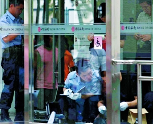 事發(fā)中國(guó)銀行位于北科大籃球場(chǎng)西側(cè),高兩層,分為對(duì)私業(yè)務(wù)區(qū)和基金業(yè)務(wù)區(qū)。昨日中午12時(shí)10分許,顧客王明(化名)進(jìn)入該行準(zhǔn)備提款!叭抛簧献奈鍌(gè)顧客,兩個(gè)開放的銀行窗口前各有人在辦業(yè)務(wù)!蓖趺髡f(shuō)。
