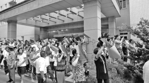 讀者方序:日食開始時(shí),浙醫(yī)二院一對(duì)母女提著鹽水瓶到外面觀看。
