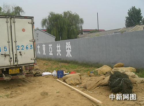 兵法城是該市的一個(gè)旅游景點(diǎn),城門(mén)口進(jìn)出的行人很多,很多人對(duì)城門(mén)上的日本國(guó)旗議論紛紛,還有一些市民掏出手機(jī)進(jìn)行拍照。走進(jìn)兵法城,記者看到院子里有很多“彈藥箱”之類(lèi)的東西,還有幾個(gè)工人在平整院子,墻壁上刷有“大東亞共榮”的字樣,一問(wèn)才知道是在拍攝電影。