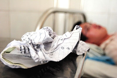 在謝崗人民醫(yī)院四樓住院部,記者見(jiàn)到,江赟的上衣被完全撕破,全身沾滿了淤泥。眼角紅腫,其腦部、頸部、腿部等多處有明顯抓傷痕跡。而南方都市報(bào)記者莫曉東,大腿青腫,頸部、全身等也有明顯被抓傷痕跡。據(jù)兩人的病歷顯示:江赟,左眼骨脹腫、左頸部抓傷、全身多處軟組織損傷。莫曉東,左耳后腫脹、多處皮膚破損、右大腿腫脹。主治醫(yī)生表示,兩人全身多處受傷,特別是本報(bào)見(jiàn)習(xí)記者江赟,在今年5月剛做完左聽(tīng)小骨手術(shù),而在昨天又被人重?fù)纛^部,需要做進(jìn)一步觀察治療。 (記者唐波、易建成)