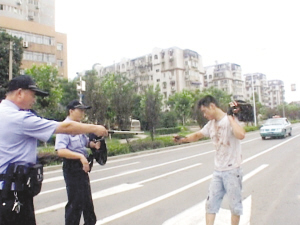 該男子出現(xiàn)之后,很快在附近人行橫道上就圍滿了群眾,大家都遠(yuǎn)遠(yuǎn)地站著,紛紛議論起來(lái)!安粫(huì)是在拍電影吧?也沒(méi)有看到攝像機(jī)?”就在周圍群眾七嘴八舌地議論著的時(shí)候,幾輛警車呼嘯而至。