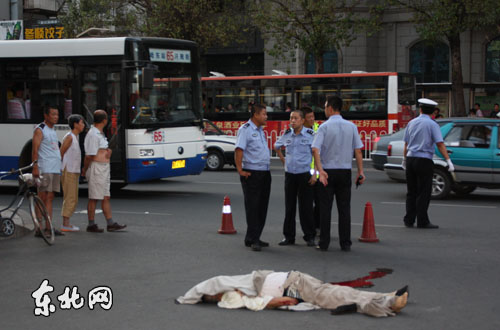 11日18時(shí)30分,記者在現(xiàn)場(chǎng)看到,死者頭部已被覆蓋,身旁有一灘長(zhǎng)約一米的血跡。哈爾濱市交警支隊(duì)道里大隊(duì)已在現(xiàn)場(chǎng)處理相關(guān)事宜。據(jù)目擊者介紹,事故發(fā)生時(shí)間為16時(shí)40分許,一公交車(chē)在拐進(jìn)站臺(tái)時(shí),將一男子當(dāng)場(chǎng)撞死。事發(fā)僅10分鐘,道里大隊(duì)的工作人員就趕到現(xiàn)場(chǎng)。