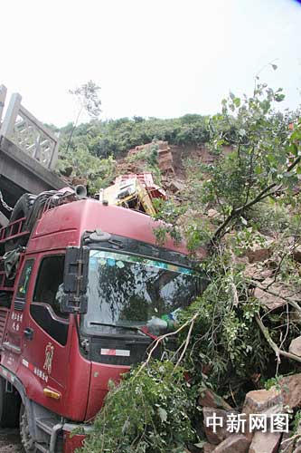 中新社紹興八月十五日電 ( 江耘 余昌龍 倪春軍)八月十五日上午九時(shí)許,一0四國道浙江嵊州三界鎮(zhèn)清風(fēng)橋路段發(fā)生山體塌方,一萬多立方山石襲向一0四國道和清風(fēng)大橋,造成道路中斷,正在行駛的車子被埋山石中。不幸中的萬幸,車內(nèi)的五名遇險(xiǎn)人員死里逃生。