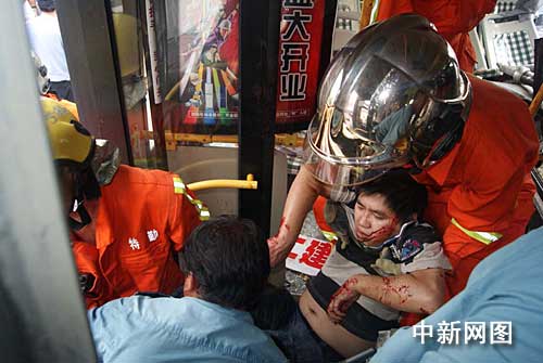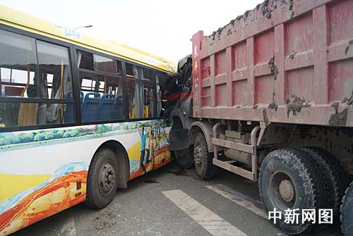 據(jù)了解,12時34分,救援官兵到達事故現(xiàn)場,只見事故現(xiàn)場一片狼藉,秩序混亂,地上碎玻璃、汽車零部件灑落一地,公交車廂內(nèi)血跡斑斑,求救聲不斷,同時,該路段交通一度陷入癱瘓狀態(tài),汽車在此排起了長長的車隊。與此同時,由于巨大的撞擊力,工程車車頭嚴(yán)重變形,且半個車頭完全撞入公交車車廂內(nèi),導(dǎo)致車廂內(nèi)的十余名乘客不同程度受傷,且有一名被困乘車傷勢較重,急待救援。由于擠壓的關(guān)系,該名被困乘客臉色蒼白,神志不清,身上、臉上多處出血,不停的發(fā)出痛苦的呻吟,如不及時搶救,隨時會有生命危險。