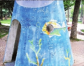 昨日有市民投訴稱,市青少年宮內(nèi)—處“趣味天地”的兒童游樂場“城堡”,被—些入視為“愛情宣言”之處,刻寫得面目全非。