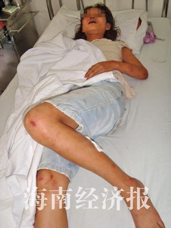 8月23日凌晨1時(shí)30分,海口靈山鎮(zhèn)18歲女子林某經(jīng)過(guò)?诩t城湖車站時(shí),被20歲的女大學(xué)生柯某與7名同伙劫持到美舍河洗馬橋三峰里路口附近?履撑c同伙將林某砍成重傷并脫光其衣服,柯某還慫恿同伙對(duì)林某實(shí)施非禮……