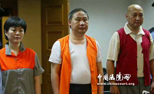 手里拿著各種軍事院校招生表格,向落榜考生家長承諾可以幫助孩子上軍校,保證有軍籍、包分配,可是學(xué)生卻一直無法入學(xué)。今天上午,北京棋幫投資管理有限公司法定代表人周濤(女,46歲,上圖左一)、河北籍無業(yè)人員張克文(男,45歲,上圖左二)、河北籍無業(yè)人員胡國玲(男,56歲,上圖右一)三人因涉嫌詐騙罪在北京市第一中級人民法院受審。