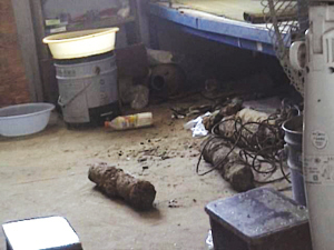 昨天中午12點左右,一個收廢舊的來到這家工地,說是收廢舊,其實是想收點文物,因為工地經(jīng)常能挖出些瓶瓶罐罐的。一個民工說他有好東西,就把收廢舊的帶到了宿舍,從床下掏出個銹跡斑斑的東西,說這些陶罐能值多少錢。渴諒U舊仔細一看,哪里是什么陶罐,明明是枚炮彈,而且床下還有3枚。乖乖!敢情前天一夜我們都睡在炮彈上,同宿舍的民工都炸了。工地的安全員趕到,立刻報警。不久警察趕到,封鎖了現(xiàn)場,并通知了排爆大隊。這4枚炮彈長約40厘米,直徑約20厘米,這位民工說是前天夜里施工時,挖土機挖出來的,他以為是陶瓷罐,就放在了床下。警察說炮彈里是有火藥的,但因為銹得嚴(yán)重,還辨認(rèn)不出是什么炮彈。這些炮彈很不穩(wěn)定,雖然很少爆炸,但遇到高溫或撞擊就難說了。下午1點鐘排爆大隊趕到,將炮彈帶走。 (吉啟雷)