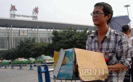 今年20歲的顧明軍來自涼山州會理縣一個小村莊,來成都半年,做電工的他沒有找到合適工作,就在一個小餐館打工。幾天前,家中來電話讓他回家。昨天早上9點半,顧明軍就到了火車北站,準(zhǔn)備買下午1點回老家的車票。買了票,顧明軍看見廣場上圍著一群人!暗降子猩蹲雍每吹模俊鳖櫭鬈姄荛_人群,發(fā)現(xiàn)樹下躺著一個紙箱子,箱里有個盒子,上面有塊紅布。“啥子?xùn)|西哦?”“骨灰盒,不曉得哪個掉了的!”“看到就晦氣,哪個愿意動它。”旁邊一位拿著掃帚的大姐說,8日晚上就有人發(fā)現(xiàn)這個骨灰盒躺在樹下,沒人敢動。“骨灰盒?”顧明軍發(fā)現(xiàn)盒子已經(jīng)被人拆開,周圍粘滿了泥土!疤炷趿,去世后竟然這樣悲慘。”顧明軍走上前去,撿起骨灰盒小心翼翼地放進紙箱,并蓋好了蓋子,“人死了,骨灰不能被風(fēng)吹掉!鳖櫭鬈婇_始查看骨灰盒,試圖找到聯(lián)系方式,但除了外包裝上有“歐式別居”4個手寫的字外,沒有任何線索。