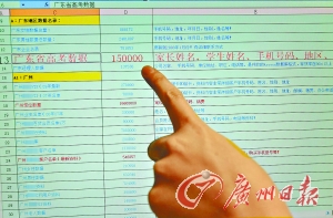 在這份數(shù)據(jù)庫中,記者發(fā)現(xiàn)了一份15萬人的廣東高考數(shù)據(jù),包括家長和學生姓名、手機號碼等。群發(fā)公司工作人員表示,這個數(shù)據(jù)是今年最新的,并且暗示“現(xiàn)在剛開學,對學生家長發(fā)‘銀行轉(zhuǎn)賬類’的挺合適”。