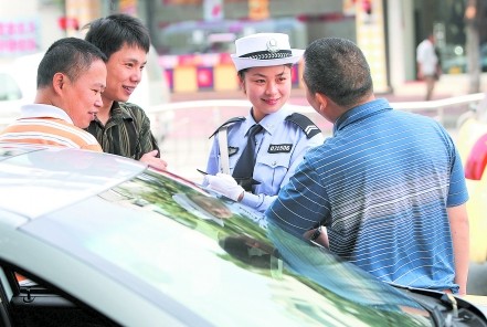 如同網(wǎng)上視頻一樣,交警MM對每位司機都是微笑著先敬禮、然后再開單、處罰,被處罰的司機們看上去心服口服,居然也都掛著微笑。