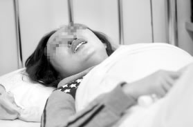 17日驗(yàn)血時(shí),秦老師開(kāi)始大量出血,床單和褲子都濕透了。醫(yī)生看此情況,對(duì)秦老師說(shuō):“不行了。”秦老師說(shuō):“盡量把孩子保住!贬t(yī)生給她打了保胎針,血暫時(shí)止住了。