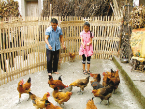 曾得益種莊稼、打花鼓、加上農(nóng)村低保,一年收入不到3000元。為補(bǔ)貼家用,父女倆還養(yǎng)了16只雞。養(yǎng)雞后,璐璐天天到堰塘摸貝殼喂雞,盼著它們快些長(zhǎng)大。