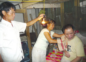 楊海英熱情地跟記者打招呼:“不好意思,家里又小又亂,你們隨便坐吧!币驗樯畹牟賱,這位才40歲的侗族婦女顯得比同齡人蒼老,但黝黑的臉上帶著淳樸的微笑,又給人樂觀堅強的感覺。