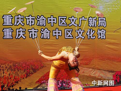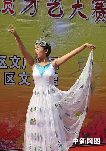 中新網(wǎng)重慶9月29日電 (孟幻 郭晉嘉)舞蹈、魔術(shù)、笛子獨(dú)奏……29日,來自重慶市渝中區(qū)12個(gè)街道的上百名外來務(wù)工人員獻(xiàn)藝,參加當(dāng)?shù)嘏e辦的外來務(wù)工人員才藝大賽,迎接新中國(guó)60華誕。