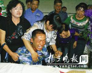 本報(揚子晚報)《為神圣一刻,父子生死等候54天》報道發(fā)出后,連日來在全國產(chǎn)生了很大反響,成千上萬的網(wǎng)友和讀者被袁亞萍的大義、堅強(qiáng)所深深感動,稱她為“偉大母親”。58天編織善意謊言,58天獨自忍受煎熬。昨天,母親袁亞萍終于等來了自己期盼的時刻——兒子王震在勝利完成首都國慶閱兵任務(wù)后,光榮返回家鄉(xiāng)大豐。在得知真相的那一刻,王震50多天來對父親無限的牽掛,瞬間化為無盡的哀痛。當(dāng)他得知母親為了完成對自己承諾,將爸爸遺體從山東運回家鄉(xiāng)存放58天,并編織一個個謊言,就是為了讓自己順利完成受閱任務(wù)時,這位堅毅的軍人再也忍受不住內(nèi)心的悲痛,和媽媽抱頭痛哭……