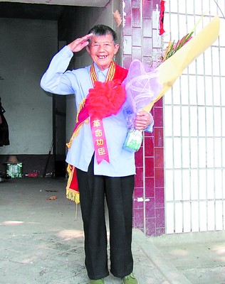昨日,記者在民政部?jī)?yōu)撫安置局制訂的新中國成立60周年觀禮名單上看到,在49個(gè)人中,湖南就有兩人!傲硪晃皇且骊柺须x休老干部、二級(jí)傷殘軍人姚杰生……不過,我是這49人中年齡最大的一個(gè)!睆埨献院赖卣f。