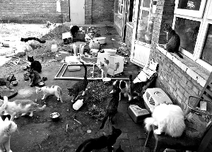 昨日,網(wǎng)友們第三次驅(qū)車來到位于通州郊區(qū)某鎮(zhèn)的劉某家。被劉某用來養(yǎng)貓的院子約150平方米,朝南的房間住人,朝北的幾間房里擺著貓籠,院子里還設(shè)計了一塊供貓排便的沙池。