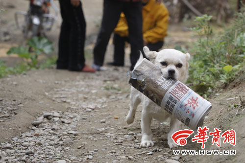 每天上午9時(shí),給李爺爺家送華商報(bào)的投遞員張躍進(jìn),會(huì)準(zhǔn)時(shí)到達(dá)位于西安市南郊的東三爻堡。“報(bào)紙來(lái)咧!”站在李爺爺家門前一段50多米長(zhǎng)的坡路下,張躍進(jìn)會(huì)扯著嗓子吆喝一句。幾秒鐘后,張躍進(jìn)和周圍的鄰居便會(huì)看到,一條黃白相間的小狗,從坡路上飛快地跑來(lái),用嘴叼起張躍進(jìn)遞來(lái)的報(bào)紙!翱烊!把報(bào)紙給爺爺!甭犃藦堒S進(jìn)的話,小狗花花扭身徑直跑到李爺爺跟前,把報(bào)紙交到老人手中。