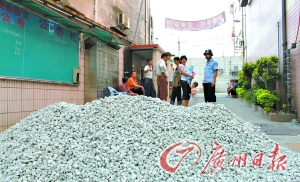 昨天早上7時,家住順德區(qū)容桂恒順閣小區(qū)的桂婆拄著拐杖去買菜,剛走到小區(qū)門口時就愣住了:狹窄的小道被一堆1米來高的碎石堵得嚴(yán)嚴(yán)實(shí)實(shí)。該小區(qū)50多戶居民只好在碎石邊鏟出一條小道,但是小區(qū)內(nèi)仍有多輛私家車受堵開不出去。