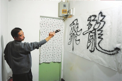 姜尚志的妻子說,最瘋狂的時(shí)候,家里的墻上都是他“滋”的字跡,每天除了吃飯、睡覺,他就是寫字、看書,旁的什么都不管。姜尚志說,他也很難理解自己的瘋狂,寫字的時(shí)候,他把一切都忘記了。
