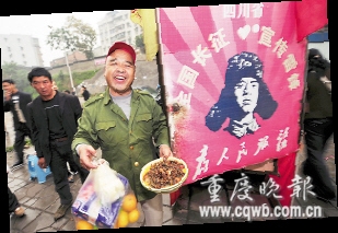 前日,劉光建離渝前往四川,人稱“活雷鋒”的他,發(fā)誓要走遍全國,用擦鞋招徒來宣傳雷鋒精神!霸谥貞c近兩月,發(fā)現(xiàn)重慶人個個是熱心人!眲⒐饨ǜ嬖V記者。