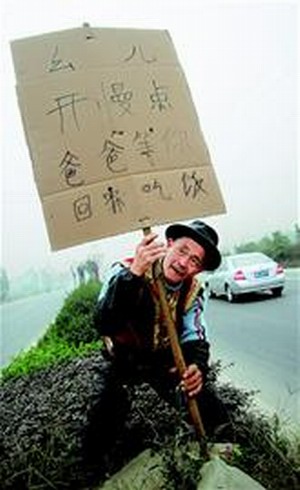 黑幕降臨,成青金快速通道梁勝村路口邊的平房內(nèi),32歲的廖大姐正在灶房里做飯,5歲的女兒唱著歌溜出屋。突然一陣刺耳的剎車聲響起。廖大姐如觸電一般,手中菜刀墜落在地。奔出門外,見女兒并未走近路口,一把將其緊緊抱住……3天內(nèi),這個(gè)路口就吞掉了兩條人命。兩年多來,僅梁勝村就有8名村民在此路口丟了性命,被稱為“死亡路口”,在反映10余次無果后,昨(8)日,該村60歲的“弼馬溫”董永發(fā)將親手制作的警示牌立在了路口:“幺兒,開慢點(diǎn),爸爸等你回家吃飯!”