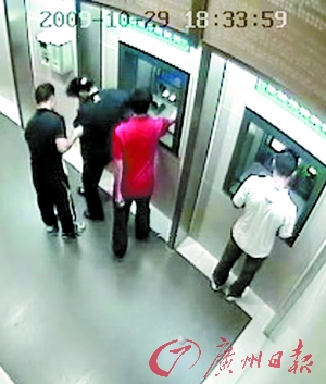 為提醒市民在銀行柜員機(jī)取款時(shí)提高警惕,警方還公布了這個(gè)詐騙團(tuán)伙作案時(shí)的一段銀行監(jiān)控錄像。