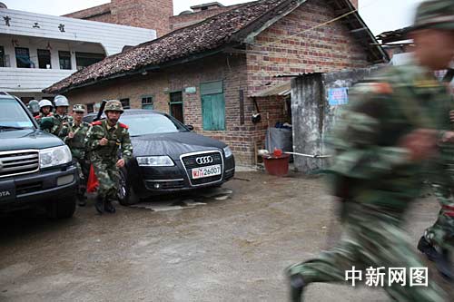 石順兵殺人后逃至一座方圓三平方公里、名為“大紅山”的荒山上藏匿。當日下午,河池市武警官兵、公安民警等四百多人集結在山上進行地毯式搜山。下午四點多,幾名武警發(fā)現(xiàn)山上一塊巖石下的草叢中竄出一人,其見到武警后又立即回竄,三名武警遂躍上前去。面對三個黑洞洞的槍口,石順兵舉起雙手說:“我投降!”