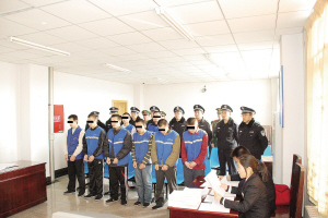 連環(huán)搶劫團伙“帶頭大哥”很年輕,個體煙酒店和獨居老嫗成為受害者,紅橋區(qū)檢察院以搶劫罪、盜竊罪、掩飾隱瞞犯罪所得罪對該團伙提起公訴。昨天上午,此案在紅橋區(qū)法院公開審理,近20名法警和武警將該案8名被告人押解上庭。