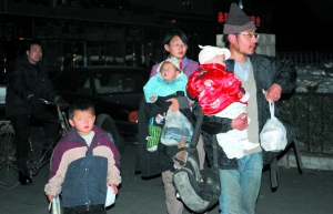 孫和沉默寡言的妻子各抱一個(gè)孩子,5歲的大兒子跟在后頭。孫說,經(jīng)過一天奔波全家人都累了,要找間旅館好好休息。