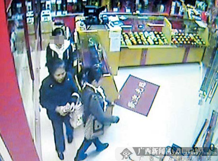 11月18日晚8時(shí)許,南寧市濱湖路一經(jīng)營(yíng)煙酒生意的店鋪發(fā)生盜竊事件,店中收銀臺(tái)8500元現(xiàn)金被人當(dāng)場(chǎng)偷走了。竊賊是兩名婦女,她們的作案過(guò)程被店里的監(jiān)控錄像一一拍了下來(lái)。