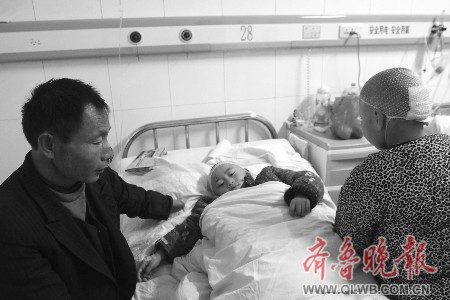 在醫(yī)院,記者見到了術(shù)后的三個女孩。據(jù)醫(yī)務(wù)人員介紹,4歲的小女兒倩倩受傷最嚴重,其頭部被砍五刀,左手被砍掉兩個手指,剛從重癥監(jiān)護室轉(zhuǎn)入病房;二女兒6歲的蕊蕊頭部被砍三刀,肩膀被砍一刀,昏迷了兩天后,目前高燒不退,躺在病床上接受治療;10歲的大女兒華華頭部被砍一刀。吳某的鼻梁和下唇被妻子砍斷。短短幾天,已花去了三萬多元的治療費用,這些錢是吳某從親戚、朋友那里東拼西湊借來的,由于倩倩和蕊蕊受傷較重,還需更多的醫(yī)療費用,吳某和大女兒都沒有住院,而是到醫(yī)院附近的衛(wèi)生室掛吊瓶。