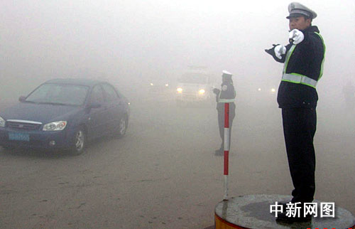 中新網(wǎng)新鄉(xiāng)11月26日電(記者吳揚 通訊員牛國平)昨日一場入冬以來最大的濃霧突降中原大地,河南省新鄉(xiāng)市交巡警支隊及時啟動惡劣天氣下的交通安全管理預(yù)案,全市千余名交警冒著濃濃大霧迅速出警,守護(hù)在市區(qū)和主干公路的大路口上,指揮和疏導(dǎo)了數(shù)萬輛過境機動車輛安全通行。