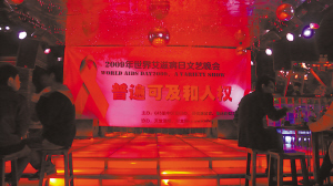 昨天晚上,天下著細(xì)雨,渝中區(qū)上清寺附近的酒吧里,同性戀者舉行世界艾滋病日文藝晚會,我市百余名男男同性戀聚集在此。記者以彩虹工作組防艾志愿者身份,走近男男同性戀者,所見所聞,發(fā)人深省。