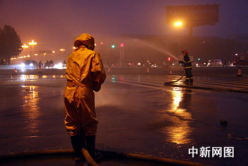 據(jù)悉,事發(fā)現(xiàn)場(chǎng)位于許昌市城市主干道,當(dāng)時(shí)又適逢下班高峰期,過往車輛、行人特別多。為安全起見,消防官兵和交警在事發(fā)現(xiàn)場(chǎng)500米范圍內(nèi)拉起警戒線,嚴(yán)禁使用手機(jī)和有明火產(chǎn)生,同時(shí)交警部門對(duì)蓮城大道和魏文路進(jìn)行了臨時(shí)雙向交通管制,禁止一切無關(guān)人員和車輛通行。根據(jù)現(xiàn)場(chǎng)情況,消防官兵迅速用兩個(gè)消防開花水槍和一個(gè)消防水炮造出三道大水幕,阻隔天然氣向周圍繼續(xù)擴(kuò)散,并向泄漏的路面處進(jìn)行噴淋。