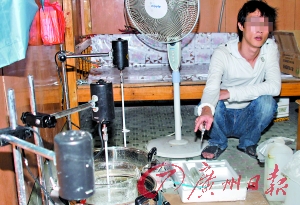 7月初,江門警方將“地主”販賣毒品的線索轉(zhuǎn)給佛山市公安局刑警支隊(duì),但“地主”聞風(fēng)潛伏,停止了制販毒活動。專案民警經(jīng)過近4個(gè)月的深入摸查,發(fā)現(xiàn)該團(tuán)伙不但販賣毒品,還利用家庭式作坊從事制造毒品活動。