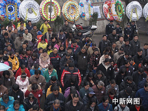 中新網(wǎng)成都12月14日電(王德明)14日,四川宜賓陰雨綿綿。下午四點,因公殉職的宜賓縣警察文萬彬追悼會在宜賓縣殯儀館舉行。公安部送了花圈,四川省公安廳發(fā)來唁電,共青團宜賓市委發(fā)出了向文萬彬同志學(xué)習(xí)的通知。省市公安局領(lǐng)導(dǎo)、宜賓市縣有關(guān)領(lǐng)導(dǎo)、滇兩省和全市兄弟區(qū)縣的同行、以及數(shù)千群眾自發(fā)前來吊唁。