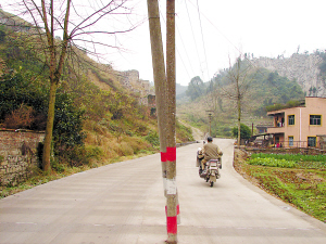 水泥公路中間竟有立著幾根電桿,將公路分成一側(cè)3米寬、一側(cè)4米寬的兩個(gè)車道。“這究竟是考駕駛員的視力,還是考駕駛技術(shù)?”近一個(gè)多月,北碚龍鳳橋街道龍車村杉樹(shù)灣的居民們,對(duì)家門前3根電桿的議論就沒(méi)停止過(guò)。