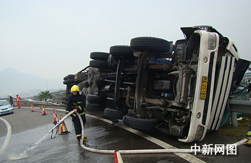 中新網溫州12月15日電(記者 江耘 通訊員 徐行號)12月15日上午,浙江金麗溫高速溫州南出口處,一輛由天津開往福州的大貨車側翻,事故造成車內兩人一死一傷。