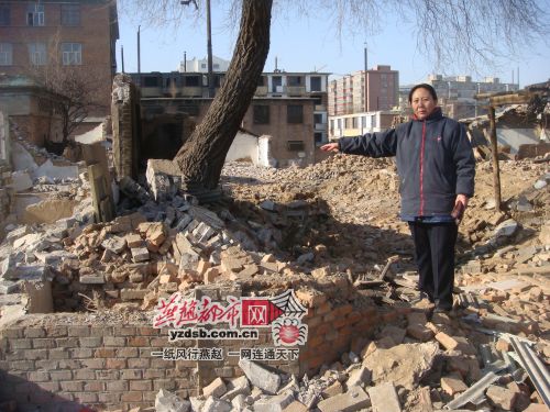 在還沒有簽定拆遷協(xié)議之前,張家口市退休女士民溫春梅的房子,被不明人士砸壞了門窗,派出所在查看現(xiàn)場后要求溫春梅去所里作筆錄,誰知等溫春梅從派出所回來后一看,這次房子竟然倒塌了一半,所有的家具都被埋了進(jìn)去,而剩下的兩間也變成了危房。而當(dāng)?shù)夭疬w辦對(duì)此的解釋竟然是:“在清理旁邊垃圾時(shí)不小心碰倒了”。11月23日,這樣的場景和解釋在張家口市橋西區(qū)戲劇性的上演。