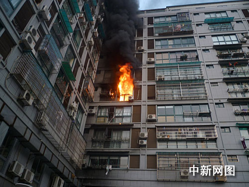 3分鐘后,消防官兵最先到達(dá)了現(xiàn)場。起火點位于6樓618室,整個房間已全部起火,火勢已處于猛烈燃燒階段,臨窗部分火焰已向外竄出向著四周蔓延,燃燒產(chǎn)生的濃煙充斥著整個樓道。在大樓的另一面,6樓、7樓部分住戶打開窗戶上向外呼救。