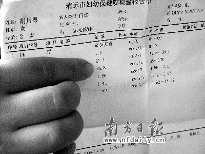 當(dāng)問(wèn)到為什么附近居民會(huì)有血鉛超標(biāo)時(shí),余孟志表示,“究竟怎樣去檢測(cè)的,我們也不清楚”。他說(shuō),居民到清遠(yuǎn)市婦幼保健院和清遠(yuǎn)市人民醫(yī)院去檢查血鉛含量,結(jié)果可能是不準(zhǔn)確的,應(yīng)該要去衛(wèi)生部門檢測(cè),做出權(quán)威報(bào)告才能證明兒童確實(shí)有血鉛超標(biāo)。