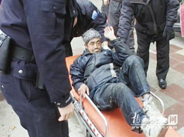 居民劉女士為人很熱心,曾是南京致和新村居委會的主任,她家就住在四象橋段的秦淮河北岸。中午11點30分,劉女士突然聽到窗外河面發(fā)出“撲通”的響聲,隔著窗戶玻璃一看,只見河面上一名頭發(fā)花白的男子在水中掙扎。此時,落水的男子離岸邊有兩米,看上去他無力自己爬上岸,劉女士于是趕緊沖出門外大喊,“快救人,有人掉河里了。”此時,住在周圍的四五名群眾趕了過來。由于河床與岸邊的護欄有1.5米的落差,一名男子扛了一個大掃把過來,將竹掃把的一端伸過去,“河水冰冷,他似乎凍僵了,試了幾次,他才抓住掃把,然后才被拽到岸邊!币幻罕姼嬖V記者,隨后三輛警車和一輛120救護車趕到現(xiàn)場。很快五六名警察和一名醫(yī)護人員帶上擔(dān)架,翻越欄桿下到河床上,然后將凍得瑟瑟發(fā)抖的男子抬上擔(dān)架,并合力抬過護欄。由于他嗆了水,吐了兩口水后,伸手向大家揮了一下手,表示感謝。很快,落水的老人被送到附近醫(yī)院救治。經(jīng)過檢查,他沒有外傷,無生命危險。