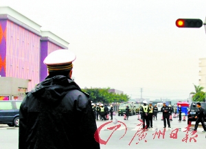 去年12月30日上午,東莞東坑鎮(zhèn)新東泰娛樂(lè)城與右邊東珠酒店之間的一條大路旁站了許多警察,在封鎖線里停著多輛警車,其中有14輛裝甲車。