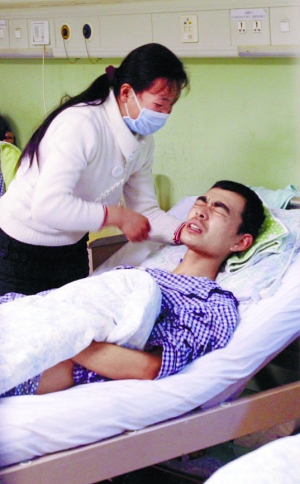 昨晚,右腎已經(jīng)被摘除的高志強(qiáng)躺在北京朝陽(yáng)醫(yī)院京西院區(qū)泌尿科病床上,妻子在一旁守護(hù)。為避免傷口感染,醫(yī)護(hù)人員不允許入內(nèi)探望。